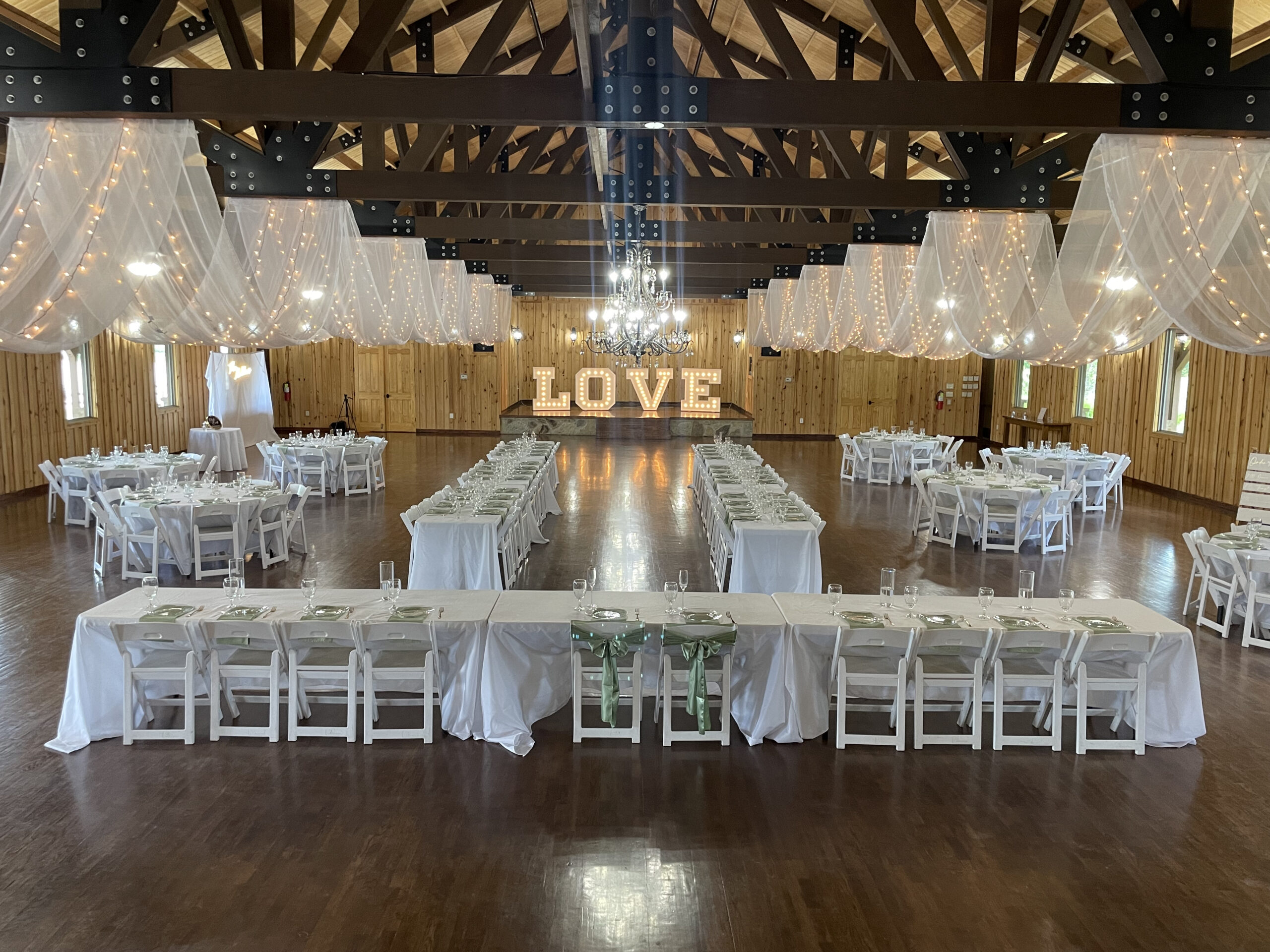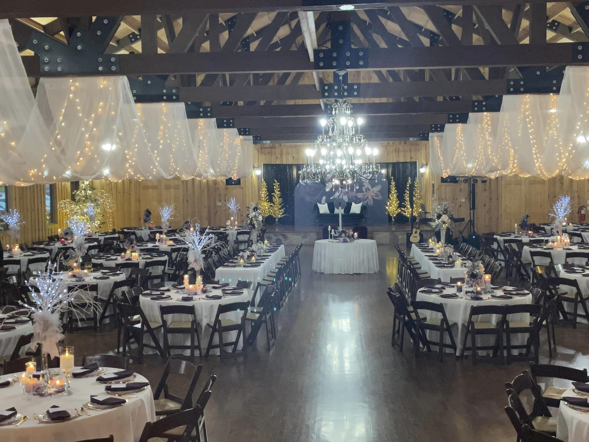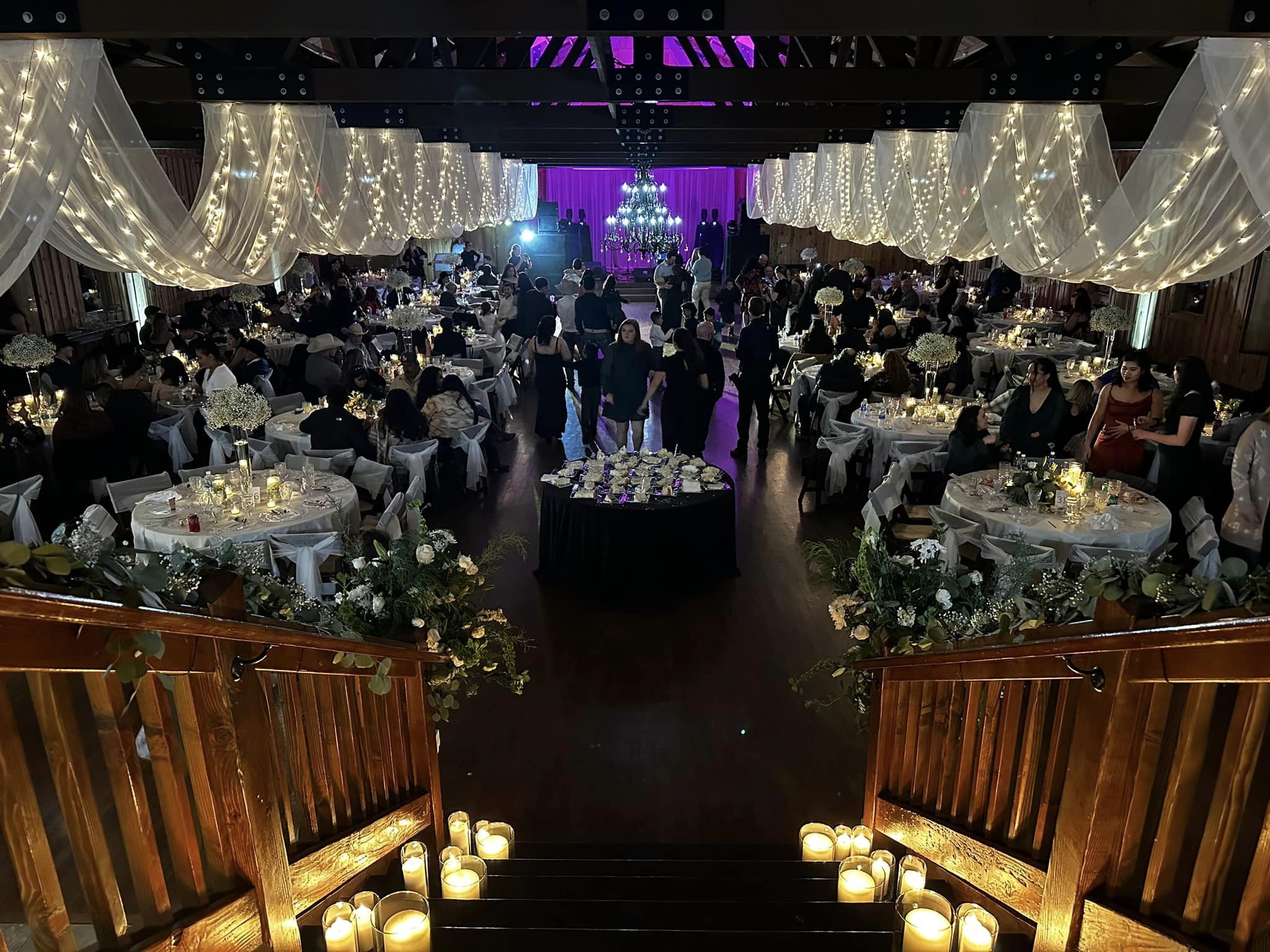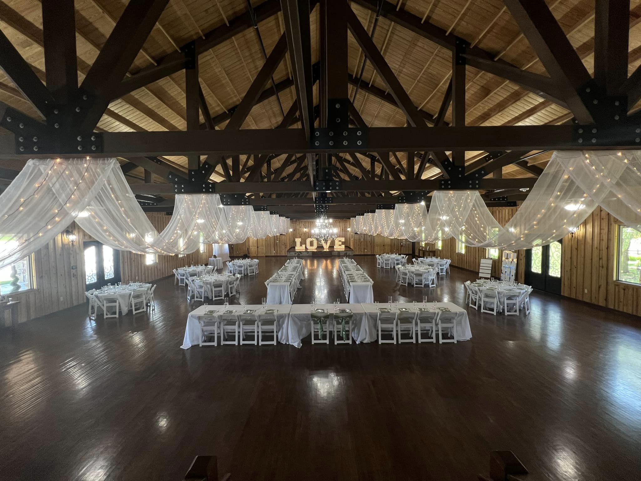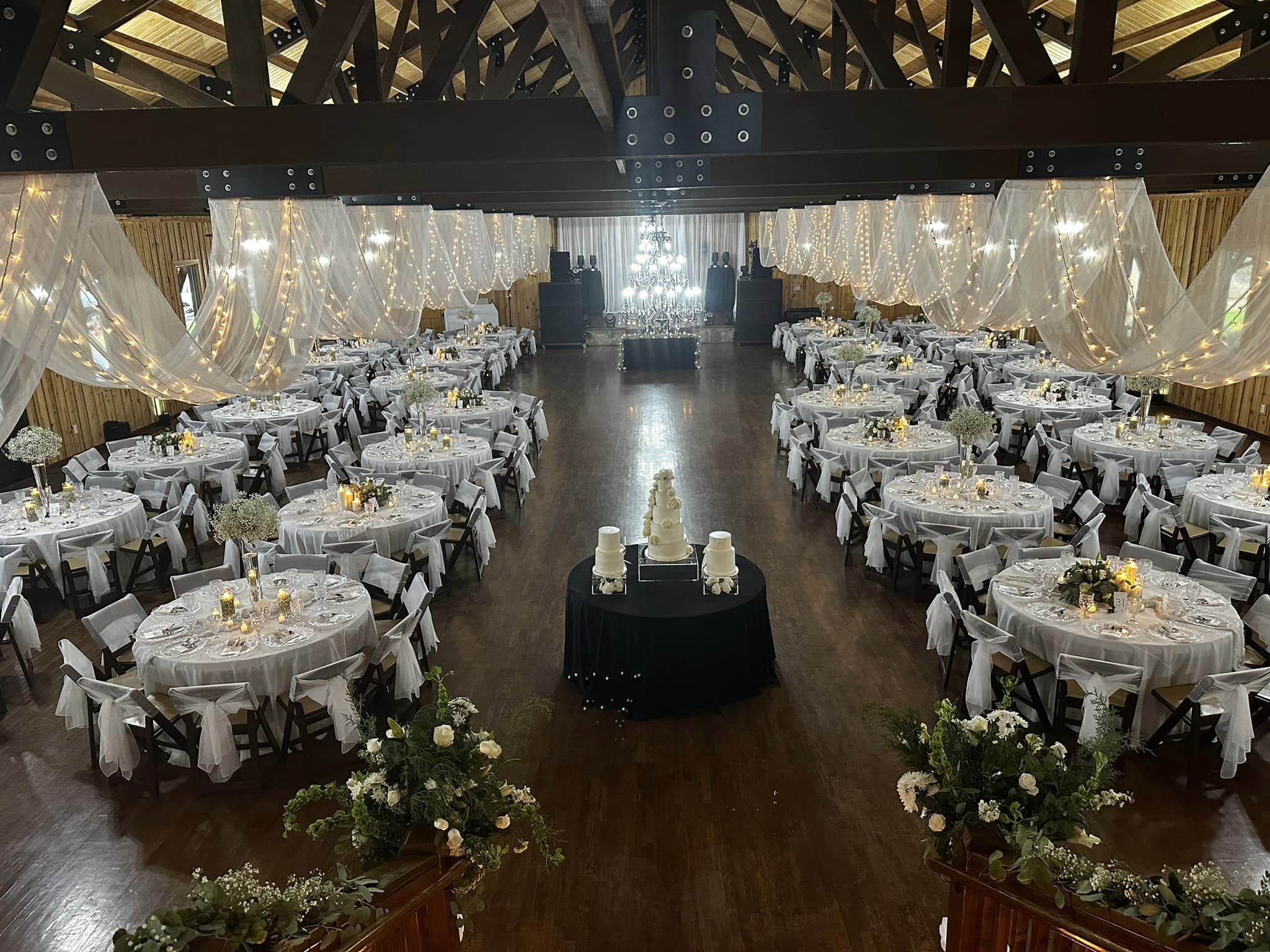 Immerse your celebration in the soft embrace of flowing fabrics, delicately draped to create a dreamy, bohemian atmosphere. Our Boho draping boasts two panels of chiffon drapery and lights that transform the venue into a whimsical haven, embracing a relaxed, yet refined aesthetic. Unveil the beauty of Boho style draping and infuse your celebration with the essence of free-spirited romance.